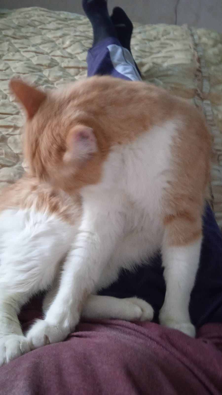 LadyS Posted July 3, 2022 Author Share Posted July 3, 2022 (edited) Нашёлся Гарфилду хозяин, одинокий мужчина 39 лет. Три года назад он попал в аварию, после неё остались проблемы со здоровьем. Жена ушла, забрала двоих детей подростков и кошку, живут они в 20 минутах ходьбы. по соседству, в выходные навещают отца. Мужчина работает пять дней в неделю. С детства он рос в окружении котов и кошек. В квартире у него чисто. Мужчина исполнительный, придерживается всех рекомендаций по кормлению и уходу за котом, кормит натуральными продуктами. Вот и встретились два одиночества. Гарфилд при первой же встрече выказал мужчине своё расположение и сразу стал спать с ним в одной постели. Мужчина возвращается с работы, они ужинают и Гарфилд ложиться на него, снимая напряжение и усталость. Представляю вам сему документальное подтверждение. Edited July 5, 2022 by LadyS Link to post Share on other sites