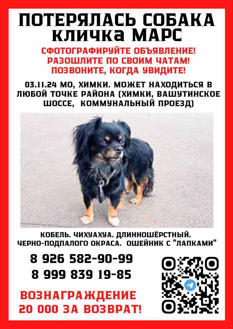 Varenichka Posted November 12, 2024 Share Posted November 12, 2024 (edited) Помогаю информационно. Пожалуйста репост ❗❗❗ Марс кобель чихуахуа, потерялся 3 ноября 2024 года, улица Германа Титова, Химки, Московская область "Уважаемые участники, чата, обращаюсь к вам за помощью 🙏🏻 Мы пытались найти помощь среди соседей, но в результате нас 5 человек, кто 24/7 ищет Марса. Пожалуйста, может быть кто-то из вас живет недалеко и откликнется нам помочь с поисками. Он совсем малыш, не знает местности и где-то буквально замерзает. Марс приехал из Великого Новгорода, его хозяева глухонемые, были здесь 2 дня. Он убежал сорвавшись с поводка 03.11.24 Все это время мы (волонтеры) его ищем. Очень нужна помощь ногами, глазами, руками🙏🏻🙏🏻🙏🏻 Территориально: ХИМКИ, ЖК Солнечная система Кличка Марс Последний раз был замечен в ночь с 08 на 09.11 в районе Коммунального проезда, 12" Чат поиска https://t.me/+eXQiRUuiyjEwZTQ6 Edited November 12, 2024 by Varenichka Link to post Share on other sites