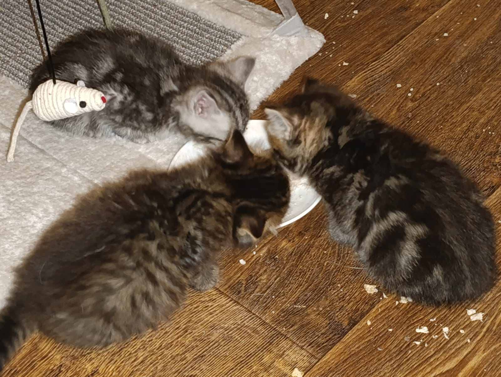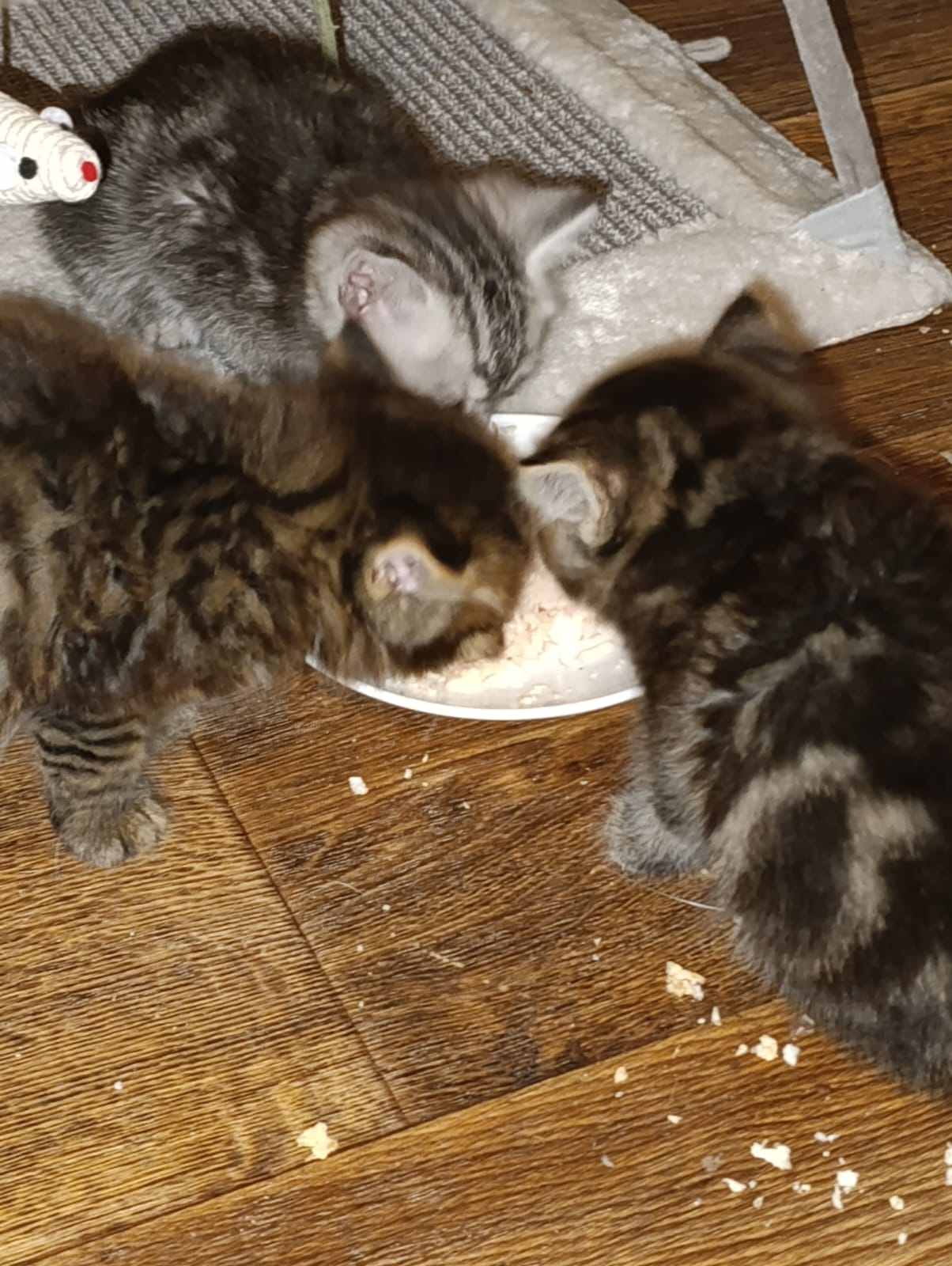 shustrokot Posted September 3 Author Share Posted September 3 (edited) Дорогие друзья, спасибо вам всем огромное!!! Мне настолько легче, оттого, что вы все здесь, вы даже не представляете. Я уже не говорю про деньги. Это просто развязывает мне руки хотя бы на первое время. Малявочки, действительно, отогрелись, повеселели, начали писать и двое уже покакали. Кто, правда, не знаю. Сегодня привезли корм и лоток. Лоток заказывала Мама в Ашане вместе с продуктами, так что, приехал смешного розового цвета, она все такое розовое и сиреневое любит. Их он очень удивил, они в нем все втроем в наполнителе копались, когда я ночью от них уходила. Глазенки мокрые, но больше никакого гноя, тфу- тфу- тфу. И они ОЧЕНЬ маленькие. Вот такая неверная младенческая походка, хвостики конусиками, мне кажется, там 3 недели и не больше. И у двоих из них какой- то очень странный окрас. Полоски не поперек, как положено у кошек по моему опыту, а как- то волнами и кругами. Я специально фото спинок выкладываю. Светло - серенькая, мне кажется, девочка. И, мне кажется, узнаю я эти печальные глаза. Она очень нежная, входишь, подходит сразу к решетке, руку суешь, замирает, пока гладишь. Самый глазастый, думаю, мальчик, уж больно шустрый. Он по клетке вверх уже начал лазить, сухой корм ест, и вообще за всем глазками следит, везде лезет. А третья или третий, вот, не знаю. У него/нее явно прямо сейчас глаза открываются, каждый раз, как прихожу, они все больше и больше. Вот этот котенок самый спокойный. Но кушает хорошо. Пока, на всякий случай, продолжаю капать Флоксал. Научились есть паучи Монж маминых кошек, но надо, наверное, им своих, котячьих купить, что бы росли. Вот такие у нас новости. 5 часов назад, Натуля-плакса сказал: Катя, тут могу помочь ручками/ножками, т.к. безработная. Днем понед - четверг у меня обучение, но утром и вечером есть возможность куда-то съездить. Мне кажется, у одного котенка нужно взять анализы, т.к. при устройстве на передержку будут спрашивать 100%. Я на севере Мск, ближ м. Физтех. Если чем могу помочь - пишите) В котиках ничего не понимаю, я собачница от кончиков ушей до кончика хвоста. И еще я подумала, что может быть Алиса, Офелия, Буба ушли чтобы вы смогли спасти этих котят? Может быть один из этих котят станет другом какому-нибудь ребенку и благодаря ему когда-нибудь он (ребенок) станет крутым вет.врачом и сам спасет много-много котиков и собачек. Я стараюсь всегда думать, что всё, что нам даётся, это НЕ ЗА ЧТО-ТО, а ДЛЯ ЧЕГО-ТО. Да, у меня есть подруга, даже скорее родственница по собаке, у нее моя собака живет. У нее вообще странная теория, что такие трудности, как больные дети, сложные больные родственники в семье (у нее, как раз эта история), тяжелые животные и прочие такие вещи, даются тем, кто сможет с ними справиться, потому, что такие вещи, так или иначе случаются, и кто - то должен это вытягивать. Ну вот, нам с вами достались все наши ребятки, те, что с нами и те, что ушли, потому, что вместе мы могли и можем им помогать. Спасибо огромное за предложенную помощь. Да, на передержку, наверное, что - то надо будет сдавать. Буду выяснять. Лишние пара рук и пара ног всегда пригодятся. Еще раз, спаисбо всем огромное, что вы меня не бросаете с этими тремя микроскопическими существами. Я очень - очень благодарна всем, кто здесь. И вижу и тех, кто здесь просто сердечко свое оставил, но давно и регулярно помогает нам))). Я вижу, что Вы с нами.