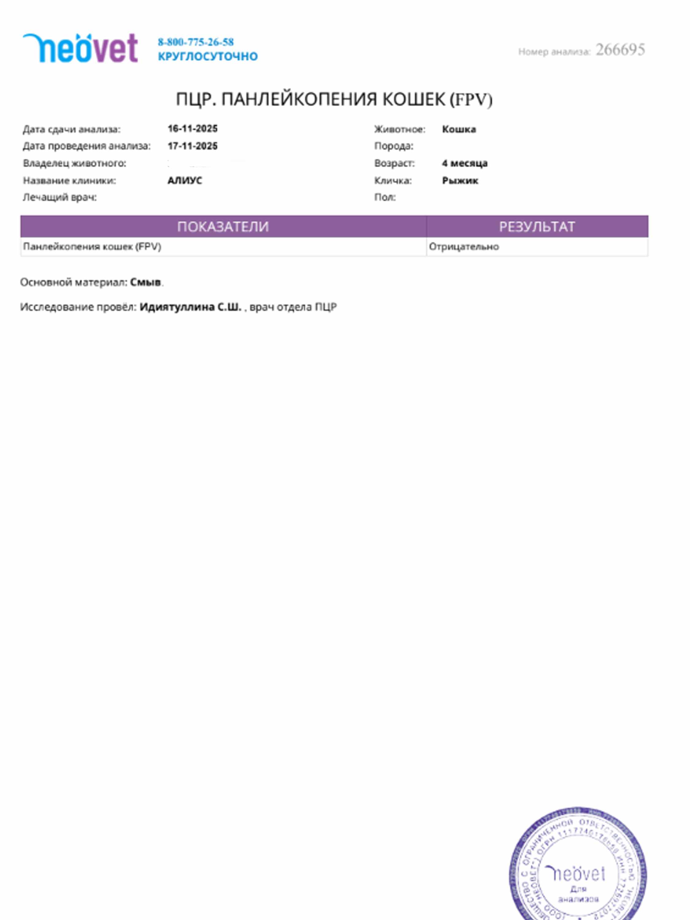 OlesyaMorozova Posted November 16, 2025 Author Share Posted November 16, 2025 (edited) Здравствуйте! На передержке только один наш котенок. Сегодня съездила в вет. клинику, потому что котенку стало хуже. Сделали какие-то уколы, дали таблетку, взяли анализ на пан и мазок. Edited November 30, 2025 by OlesyaMorozova Link to post Share on other sites